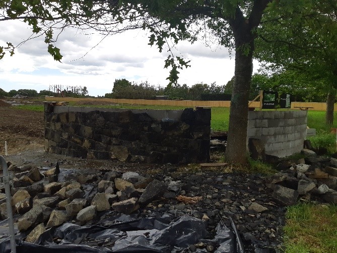 The basalt walls at the Milns Road entrance are progressing well and starting to look fabulous, Philip, the Stonemason has been working through some questionable weather to keep this on time. The whole site is starting to take shape, the curb and channel is complete with the road seal not far away.